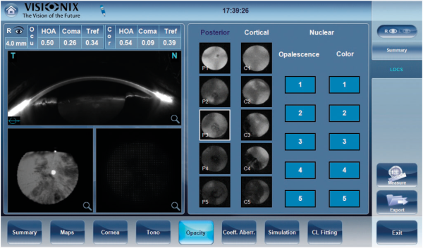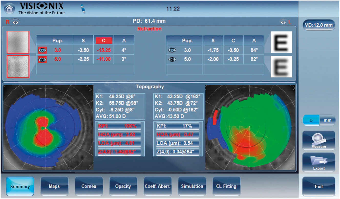 Chiếu sáng ngược để kiểm tra độ mờ của thấu kính và thang đo LOC Địa hình giác mạc Sàng lọc, đánh giá và giám sát Keratoconus